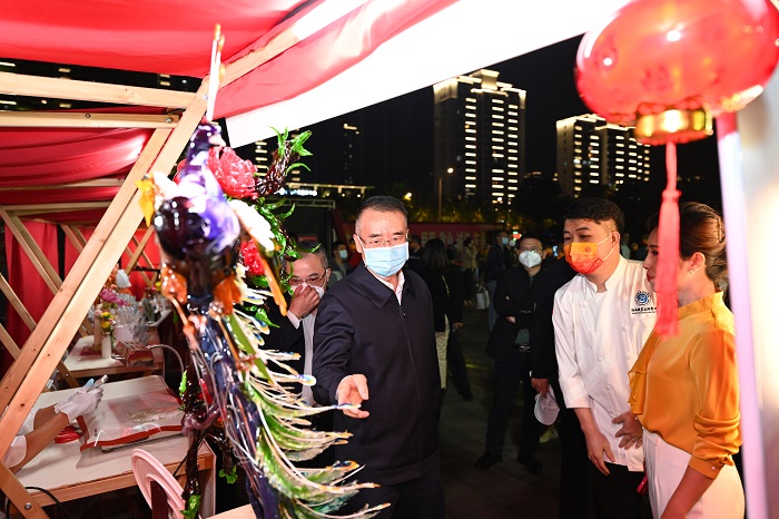 海南省人大常委會副主任、省總工會主席陸志遠,省總工會黨組書記、常務(wù)副主席王全,省總工會黨組副書記、副主席賴泳文等領(lǐng)導(dǎo)到現(xiàn)場觀看了展示,對我校的糖藝西點、藤竹編作品及技藝、非遺系列藝術(shù)扎染、現(xiàn)代花藝以及學(xué)生創(chuàng)業(yè)產(chǎn)品“南海杯中茶”和大學(xué)生創(chuàng)新創(chuàng)業(yè)基地的“潭牛文昌雞直播”饒有興致,駐足不前,還不時詢問具體的操作工藝和辦法。同時,我校展示的無人機、充電樁安裝、裝配式建筑虛擬仿真教學(xué)、果醬畫、貓咔、黎錦作品等,也引起了市民們廣泛的興趣,充分體現(xiàn)了職業(yè)教育的成果。