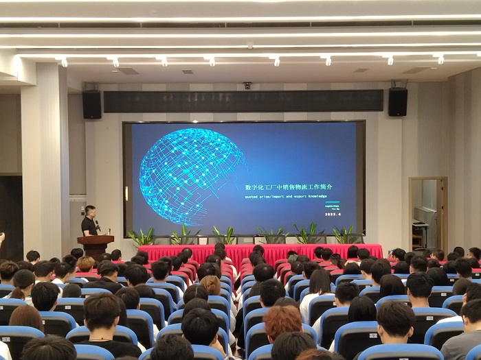 活動(dòng)中,海南金盤智能科技股份有限公司人力資源總監(jiān)林瑜對(duì)企業(yè)的背景作了全面介紹。該公司數(shù)字化工廠總經(jīng)理王榮旺為學(xué)生就金盤科技的數(shù)字化工廠中銷售物流工作作了講解,使同學(xué)們對(duì)數(shù)字化銷售物流產(chǎn)生極大的興趣以及對(duì)相關(guān)工作模式也有了初步的了解。交流會(huì)后,該公司物流部經(jīng)理尹達(dá)帶領(lǐng)我院師生分批次參觀數(shù)字化工作車間。在車間內(nèi),各專業(yè)教師向?qū)W生們一一講解數(shù)字化器械的工作原理,使學(xué)生們真切體會(huì)到實(shí)踐教學(xué)的優(yōu)勢(shì)。
