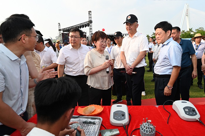 5月18日,由海南省教育廳主辦的2023年海南省職業(yè)教育活動(dòng)周啟動(dòng)儀式在??谠贫磮D書(shū)館舉行。我校選派了珠寶、非遺藤竹編技藝、電商直播3個(gè)項(xiàng)目參加展位展示以及古箏重奏參加舞臺(tái)展示表演。海南省政府副秘書(shū)長(zhǎng)張華偉、省教育廳廳長(zhǎng)李湖、副廳長(zhǎng)范緒鋒等領(lǐng)導(dǎo)來(lái)到學(xué)校展位,認(rèn)真聽(tīng)取了學(xué)校辦學(xué)特色與優(yōu)勢(shì)匯報(bào)。我校的展位吸引不少參展者駐足圍觀(guān),不時(shí)向師生詢(xún)問(wèn)珠寶雕刻、鑒定和藤竹編手工編制的技藝,參展師生耐心細(xì)致地進(jìn)行了解答。參展人員對(duì)學(xué)校的辦學(xué)特色和作品展示給予了高度評(píng)價(jià),一致認(rèn)為這些作品展示具有創(chuàng)新性和實(shí)用性。同日,我校還參與了江東新區(qū)校企合作簽約活動(dòng)。