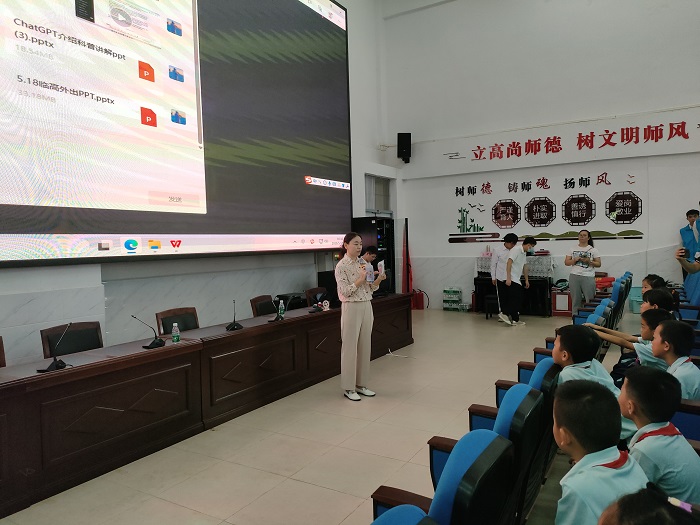 走出去——海南職業(yè)技術(shù)學(xué)院以技能下基層、進(jìn)社區(qū)為抓手,充分展示和宣傳職業(yè)教育成果。5月18日,我校科技志愿者團(tuán)隊(duì)赴臨高縣博文學(xué)校開(kāi)展科普宣講活動(dòng)。以“扎實(shí)推進(jìn)主題教育,科技助力鄉(xiāng)村振興”為主題,科技志愿者宣講老師,通過(guò)圖文和視頻演示,以“新能源與我們的生活”“人工智能最前沿”為課題,分別為同學(xué)們進(jìn)行授課,受到臨高縣廣播電視臺(tái)和海南新聞聯(lián)播的報(bào)道。