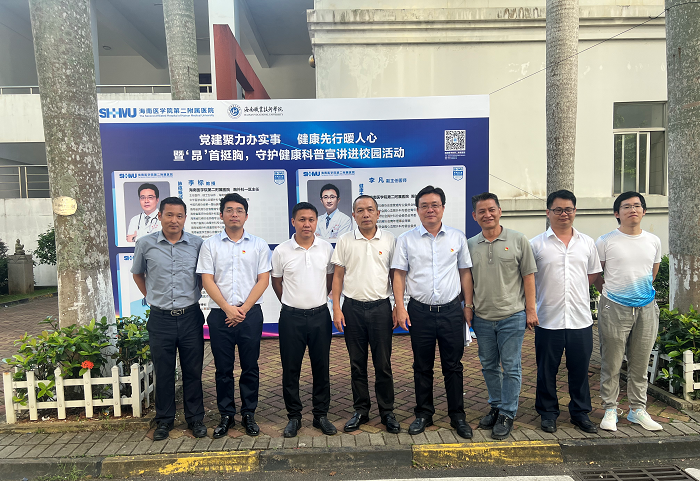 提高全校師生的健康意識(shí),5月31日,海南醫(yī)學(xué)院第二附屬醫(yī)院(胸外科一區(qū))第十六黨支部聯(lián)合海南職業(yè)技術(shù)學(xué)院工會(huì)、旅游學(xué)院第一黨支部結(jié)合主題教育,共同開展“我為群眾辦實(shí)事·守護(hù)師生健康科普”宣講進(jìn)校園活動(dòng)。學(xué)校黨委書記王承慶參加活動(dòng)。