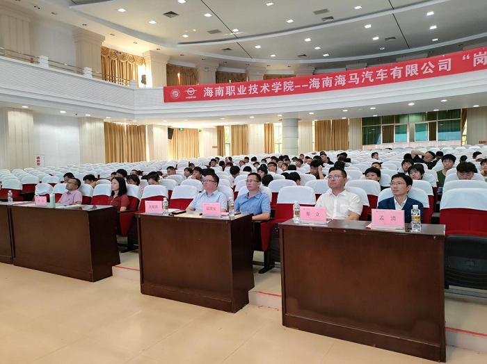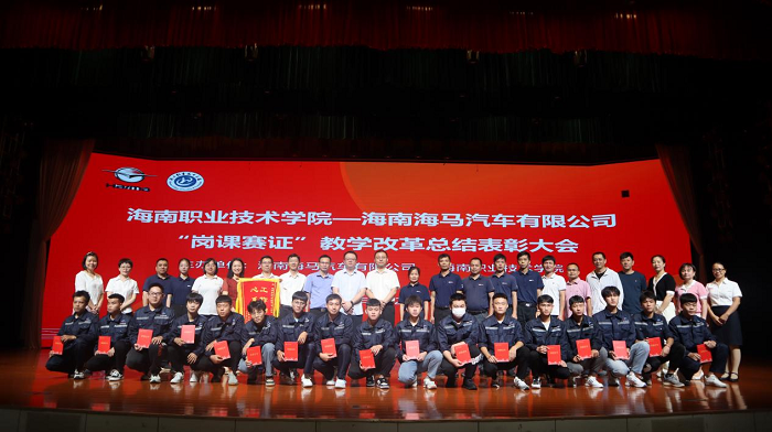 6月29日上午,海南職業(yè)技術(shù)學(xué)院—海南海馬汽車有限公司“崗課賽證”教學(xué)改革總結(jié)表彰大會(huì)在海職院大禮堂圓滿落幕。海南海馬汽車有限公司總經(jīng)理助理溫國安,黨委副書記、總經(jīng)理助理鄭立,海南職業(yè)技術(shù)學(xué)院校長助理沈振國、教務(wù)處副處長陳玨、工業(yè)與信息學(xué)院院長孟清、黨總支書記林尤偉、副院長陳翠琴等出席本次大會(huì)。