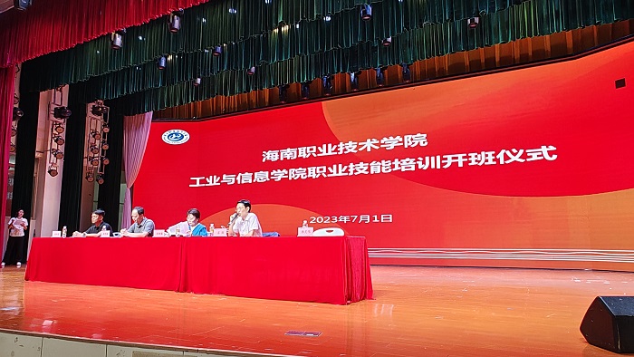7月1日,海南職業(yè)技術(shù)學(xué)院?jiǎn)?dòng)《2023年“技能自貿(mào)港”行動(dòng)——高技能人才培訓(xùn)認(rèn)證集訓(xùn)月》工作,全校組織1926名即將奔赴職業(yè)崗位的莘莘學(xué)子參加職業(yè)技能等級(jí)培訓(xùn)和SYB創(chuàng)業(yè)培訓(xùn)。海南職業(yè)技術(shù)學(xué)院副校長李琳娜、海南省網(wǎng)絡(luò)安全和信息化協(xié)會(huì)理事長林明瑜等領(lǐng)導(dǎo)出席會(huì)議,工業(yè)與信息學(xué)院學(xué)生作為參訓(xùn)學(xué)員代表參加開班儀式。