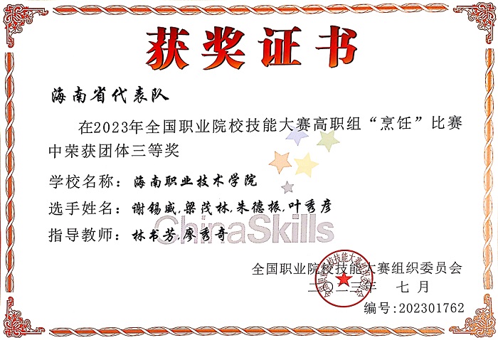 我校學子喜獲2023年全國職業(yè)院校技能大賽高職組烹飪賽項三等獎