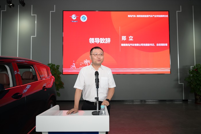 海南海馬有限公司黨委副書記、總經(jīng)理助理鄭立致辭(工信學院供圖)