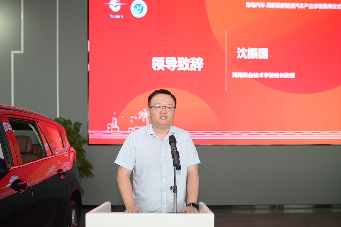沈振國在致辭中表示,此次校企合作共建新能源汽車產(chǎn)業(yè)學院是一個全新的起點,希望校企雙方能明確雙主體育人的內(nèi)涵,同時探索多主體育人機制,按照《海南省現(xiàn)代產(chǎn)業(yè)學院建設(shè)總體方案》要求腳踏實地落實每一項工作,創(chuàng)新校企合作課程開發(fā)模式,共建校企實習實訓平臺,建立校企人才雙向流動機制,搭建產(chǎn)學研服務(wù)平臺,切實提升為產(chǎn)業(yè)培養(yǎng)高技能人才的水平。