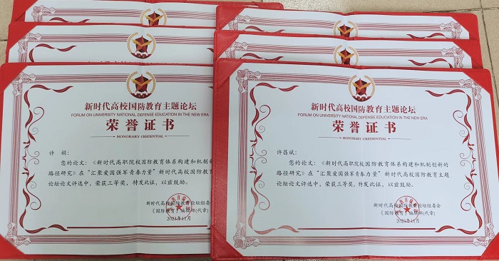 11月8日至11 日,由南開大學(xué)和《國防教育》編輯部主辦,中國紅色文化研究會(huì)國防文化專業(yè)委員會(huì)和北京中關(guān)工國防教育咨詢中心承辦的“匯聚愛國強(qiáng)軍青春力量”新時(shí)代高校國防教育主題論壇在天津召開。我校許昌斌副教授和許娟老師撰寫的3篇論文主題鮮明,論述充分,其中《新時(shí)代高職院校國防教育體系構(gòu)建和機(jī)制創(chuàng)新的路徑研究》榮獲三等獎(jiǎng),《新媒體語境下高校國防教育策略研究》《基于共生理論構(gòu)建全民國防教育體系的路徑研究》榮獲優(yōu)秀獎(jiǎng)。