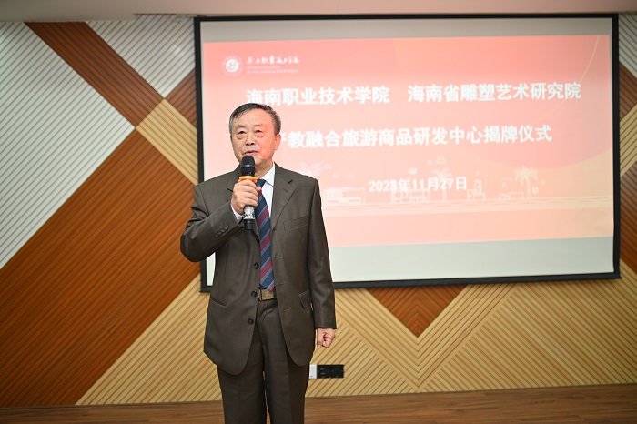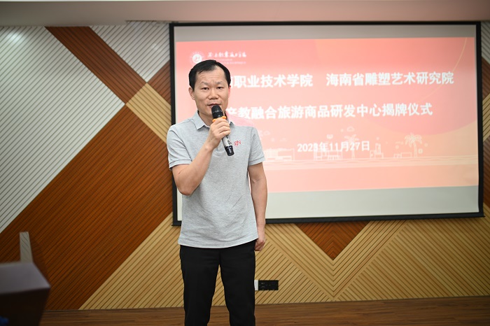 11月27日,產(chǎn)教融合旅游商品研發(fā)中心揭牌儀式在海南職業(yè)技術(shù)學(xué)院隆重舉行。海南省雕塑藝術(shù)研究院院長(zhǎng),著名雕塑大師程連仲、海南文化創(chuàng)意研究院副院長(zhǎng)劉曉霞,京潤(rùn)珍珠科技有限公司總經(jīng)理王海,海南省歸創(chuàng)國(guó)際文旅投資有限公司陳虎慶和海南職業(yè)技術(shù)學(xué)院校長(zhǎng)助理沈振國(guó),學(xué)校旅游學(xué)院黨總支書(shū)記符國(guó)繁、院長(zhǎng)顏燕參加開(kāi)幕式。