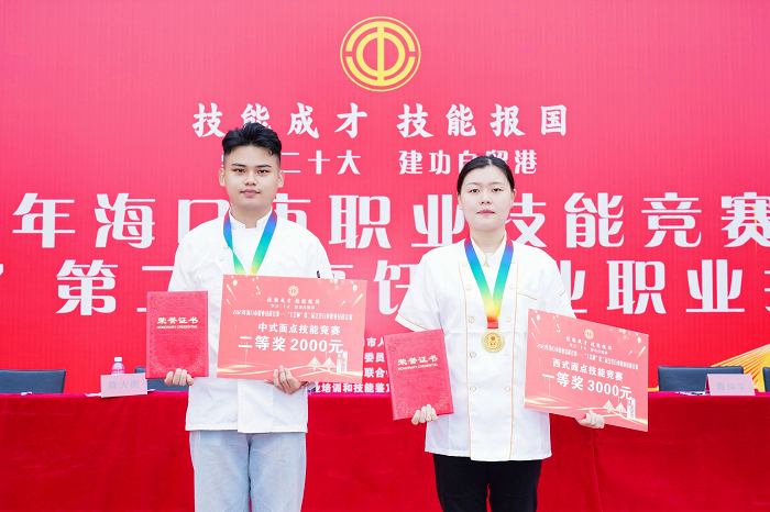此次競(jìng)賽由??谑锌偣?huì)、海口市人力資源和社會(huì)保障局主辦,海南省烹飪協(xié)會(huì)承辦,大賽烹飪類賽項(xiàng)共設(shè)中式烹調(diào)、中式面點(diǎn)、西式面點(diǎn)、西式烹調(diào)4個(gè)賽項(xiàng)。來自??谑械?00余名精英選手通過層層選拔登上比賽擂臺(tái),其中,我校烹飪工藝與營(yíng)養(yǎng)專業(yè)學(xué)生經(jīng)過激烈角逐,憑借扎實(shí)的基本功和沉著的臨場(chǎng)發(fā)揮,最終周倩榮獲西式面點(diǎn)賽項(xiàng)金獎(jiǎng)(第一名),梁東榮獲中式面點(diǎn)賽項(xiàng)銀獎(jiǎng)(第二名),另有5名學(xué)生獲得優(yōu)勝獎(jiǎng)。