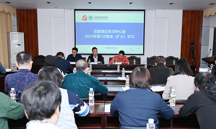 1月4日,我校黨委理論學習中心組開展2024年第1次集體(擴大)學習,學校黨政領(lǐng)導、校長助理,各部門主要負責人,二級學院院長、書記參加,黨委書記周炳才主持。