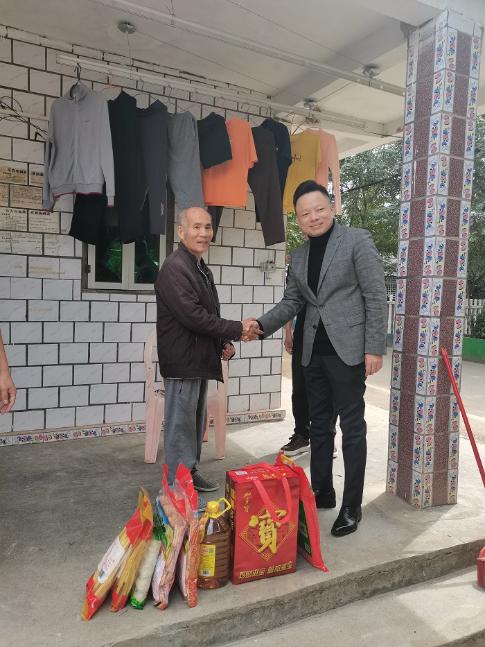 新園村黨支部書(shū)記兼主任麥賢新歡迎周炳才一行,對(duì)學(xué)校多年來(lái)幫扶新園村脫貧攻堅(jiān)和鄉(xiāng)村振興工作,表示衷心感謝。周炳才詳細(xì)了解當(dāng)?shù)厝罕娨荒陙?lái)的生產(chǎn)、生活情況,代表學(xué)校祝大家春節(jié)快樂(lè)、闔家幸福。周炳才與現(xiàn)場(chǎng)群眾聊家常話短,及時(shí)把學(xué)校的關(guān)懷和溫暖送到他們的心坎上,現(xiàn)場(chǎng)向監(jiān)測(cè)戶、低保戶、特困戶等21戶發(fā)放米油等年貨。