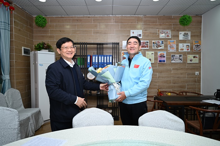 1月23日下午,省總工會黨組書記、常務(wù)副主席賴泳文一行來校慰問2022年全國五一勞動獎?wù)芦@得者紀(jì)寬宏同志。我校黨委書記周炳才,副校長、工會主席符興干參加慰問活動。