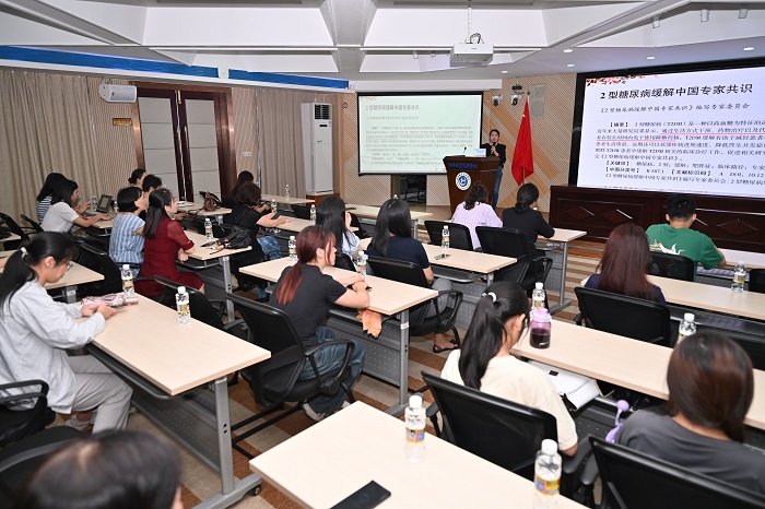 健康講座從下午3時正式開始,海南省中醫(yī)院醫(yī)務(wù)部副主任、臨床營養(yǎng)科副主任醫(yī)師符楊浠醫(yī)學(xué)碩士作了題為“健康飲食與糖尿病血糖管理—“膳”食“膳”終”的健康知識講座,對糖尿病的病因及健康飲食進行了詳細(xì)講解。