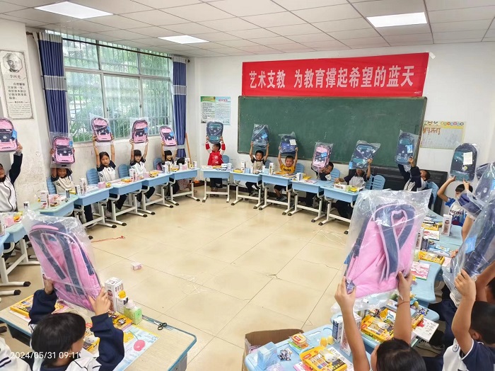 小朋友們舉起書包(校鄉(xiāng)村振興工作隊供圖)