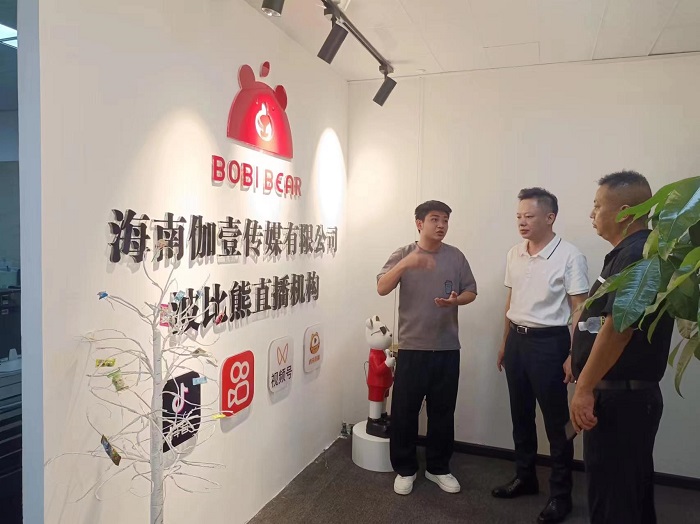 在海南伽壹傳媒有限公司,該司總經(jīng)理林道龍是我校鄉(xiāng)村振興學(xué)院學(xué)生。他對校領(lǐng)導(dǎo)的到訪表示歡迎,并引領(lǐng)周炳才一行參觀了公司的直播間、錄播室等工作場所。周炳才對林道龍創(chuàng)業(yè)表示祝賀,希望學(xué)生加強(qiáng)與學(xué)校聯(lián)系與交流,也能經(jīng)常回校分享經(jīng)驗。林道龍表示會加強(qiáng)與學(xué)校的聯(lián)系,把企業(yè)辦好,為校爭光。