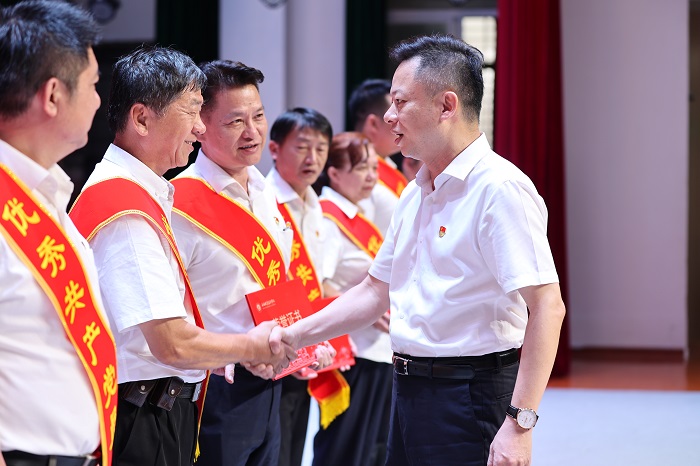 周炳才為“兩優(yōu)一先”代表頒發(fā)證書(shū)(黨委宣傳部供圖)