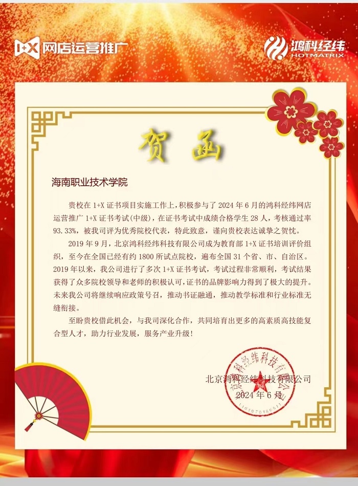 近日,我校陸續(xù)被評為2024年度1+X電子商務(wù)數(shù)據(jù)分析職業(yè)技能等級證書(中級)考核“優(yōu)秀考核院校”,1+X網(wǎng)點運營推廣職業(yè)技能等級證書(中級)考核“優(yōu)秀院校代表”。