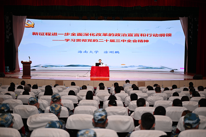 9月13日,學(xué)校黨委在大禮堂舉辦黨的二十屆三中全會精神宣講學(xué)習(xí)大會,邀請到“海南省委宣傳部黨的二十屆三中全會精神理論宣講團”專家、海南大學(xué)馬克思主義學(xué)院涂剛鵬教授為我校師生宣講黨的二十屆三中全會精神。黨委書記周炳才,黨委委員、副校長符興干,副校長李琳娜,校長助理沈振國等參加大會,符興干主持大會。