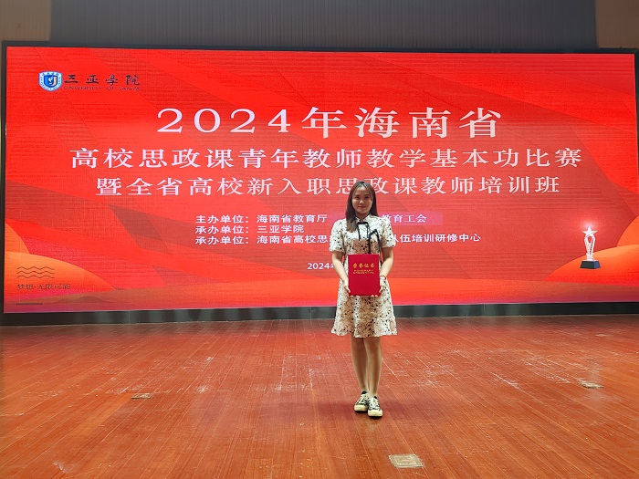 9月18日至21日,2024年度海南省高校思想政治理論課青年教師教學(xué)基本功比賽在三亞舉行。此次競(jìng)賽分為本科組和高職組兩個(gè)賽道,其中高職組共有來自全省13所高校的32位優(yōu)秀青年教師同臺(tái)競(jìng)技,切磋教學(xué)技藝。經(jīng)過激烈的角逐,我校教師賈淑珍榮獲比賽高職組一等獎(jiǎng),趙騎賢榮獲優(yōu)秀獎(jiǎng)。