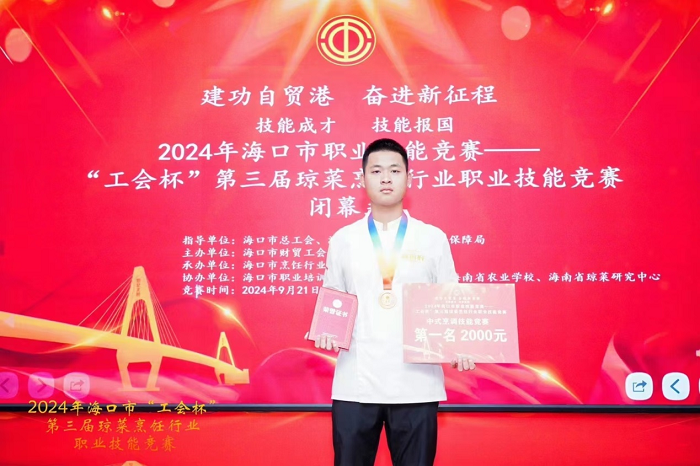 我校學(xué)生榮獲2024年海口市職業(yè)技能競(jìng)賽瓊菜項(xiàng)目金牌