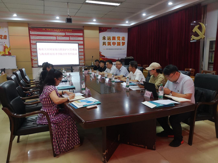 10月16日,校黨委委員、校長助理、國家級職業(yè)教育教師創(chuàng)新團隊負責人沈振國率隊前往海南大田國家級自然保護區(qū)管理局,出席坡鹿保護合作協(xié)議簽約儀式并開展實地調(diào)研。海南大田國家級自然保護區(qū)管理局黨委副書記、副局長鄭練對我校人員的到來表示熱烈歡迎,詳細介紹了保護區(qū)的發(fā)展歷程及坡鹿種群保護現(xiàn)狀,并表示希望與我校在坡鹿保護等領域加強合作。