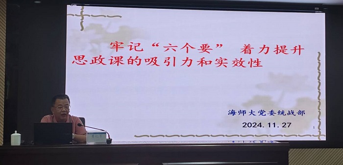 為更好地增強(qiáng)我校思政課教育教學(xué)的實(shí)效性,進(jìn)一步提升思政課教師的專(zhuān)業(yè)化水平,11月28日下午,馬克思主義學(xué)院舉辦2024年思政課教師教學(xué)能力提升培訓(xùn)。2024年粵桂瓊贛滇五?。▍^(qū))高校思想政治理論課青年教師教學(xué)基本功比賽三等獎(jiǎng)、海南省高校思政課青年教師教學(xué)基本功比賽一等獎(jiǎng)獲得者賈淑珍老師作教學(xué)示范課展示。全國(guó)高校優(yōu)秀思政課教師,海南師范大學(xué)黨委常委、統(tǒng)戰(zhàn)部長(zhǎng)黃憶軍進(jìn)行點(diǎn)評(píng)。學(xué)校黨委書(shū)記周炳才,黨委委員、校長(zhǎng)助理沈振國(guó)出席。