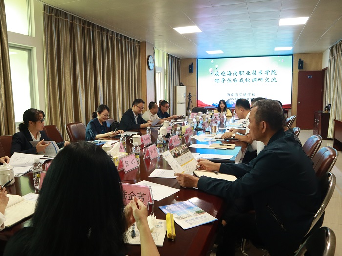 吳淑煜對沈振國一行的來訪表示熱烈歡迎,并對學(xué)校發(fā)展歷史、辦學(xué)經(jīng)驗及學(xué)生招生就業(yè)等方面進行介紹。他表示,海南職業(yè)技術(shù)學(xué)院與海南省交通學(xué)校有著廣闊的合作空間和共同的發(fā)展目標,同時也非常重視兄弟院校相關(guān)專業(yè)發(fā)展,希望在今后與我校大力支持開展師生技能、教學(xué)比賽與優(yōu)質(zhì)資源共享,不斷推動兩校之間的相互交流、共同提高。