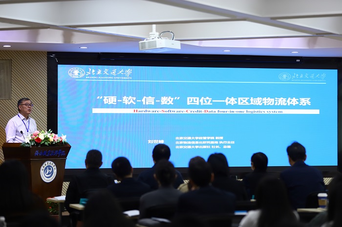 會(huì)后,劉海榮和北京交通大學(xué)博士生導(dǎo)師、北京交通大學(xué)出版社社長(zhǎng)劉世峰教授分別作了主題為《海南物流:自貿(mào)港新征程中的澎湃動(dòng)脈》《“軟—硬—信—數(shù)”四位一體區(qū)域物流體系》的專(zhuān)題報(bào)告。