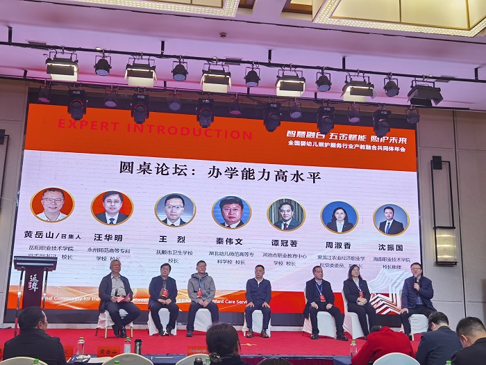在“辦學(xué)能力高水平”圓桌論壇上,沈振國(guó)詳細(xì)介紹了我校的辦學(xué)背景、產(chǎn)教融合的實(shí)踐成果以及嬰幼兒托育服務(wù)與管理專業(yè)的設(shè)置情況,同時(shí)表達(dá)了我校對(duì)于聚焦0-3歲嬰幼兒照護(hù)服務(wù)發(fā)展的強(qiáng)烈愿望,并邀請(qǐng)各企業(yè)到海南投資開設(shè)托育機(jī)構(gòu),共同推動(dòng)托育行業(yè)產(chǎn)教融合的發(fā)展。會(huì)上,學(xué)校嬰幼兒托育服務(wù)與管理專業(yè)提交的“打造嬰幼兒托育服務(wù)產(chǎn)教融合新范式——共創(chuàng)協(xié)同發(fā)展新生態(tài)的實(shí)踐與探索”產(chǎn)教融合案例,成功入選年會(huì)優(yōu)秀案例,充分展示了我校在嬰幼兒照護(hù)服務(wù)領(lǐng)域的專業(yè)實(shí)力和產(chǎn)教融合的探索成果。