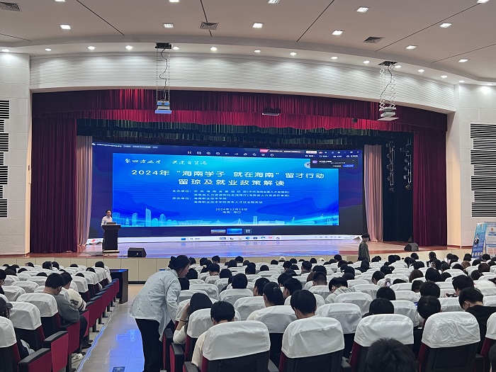 12月19日下午,我校在學(xué)校大禮堂舉辦“海南學(xué)子 就在海南-留瓊及就業(yè)政策解讀講座”,600多名學(xué)生參加了本次講座。