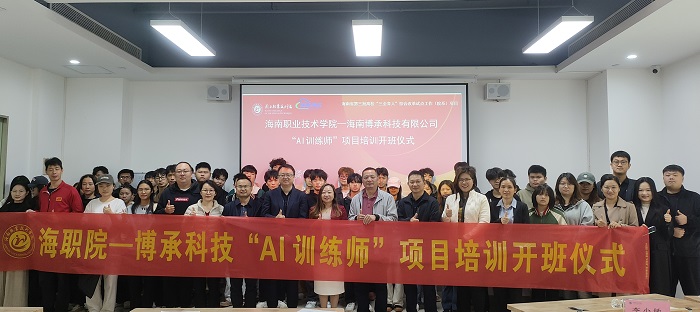 12月19日,由我校工信學院和海南博承科技有限公司攜手舉辦的“AI訓練師”培訓項目開班儀式在產(chǎn)教融合教學區(qū)舉行。校黨委委員、校長助理沈振國、海南博承科技有限公司董事長弓珊珊等參加開班式并致辭。本次培訓項目面向智能信息技術(shù)專業(yè)群23級大數(shù)據(jù)班全體同學開展。