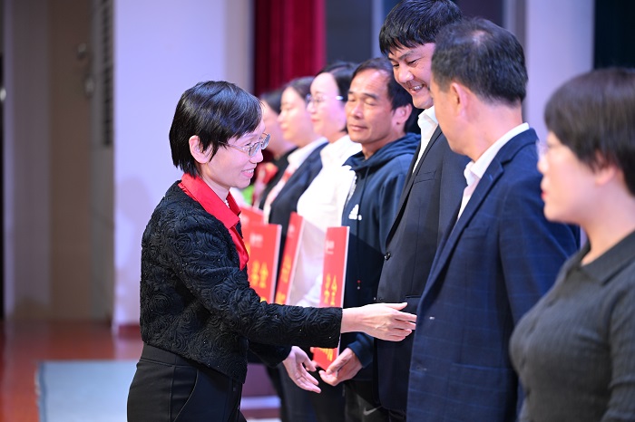 黃銀珍頒發(fā)文體藝及技能大賽指導(dǎo)教師獎(jiǎng)項(xiàng)(宣傳部供稿)