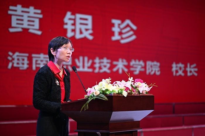 黃銀珍指出,2024年,全校師生共同奮斗、砥礪前行,緊密圍繞“省雙高”和“辦學(xué)條件達(dá)標(biāo)”建設(shè),圓滿完成了各項(xiàng)工作任務(wù),并取得了一系列優(yōu)異成果。師生們?cè)谑〖?jí)以上的教學(xué)能力、職業(yè)技能、創(chuàng)新創(chuàng)業(yè)和文體藝大賽中,共斬獲74個(gè)獎(jiǎng)項(xiàng),其中國(guó)家級(jí)6項(xiàng),省級(jí)68項(xiàng)。特別是在世界職業(yè)院校技能大賽總決賽中榮獲一金一銀的好成績(jī),這個(gè)金獎(jiǎng)是全省高職院校唯一的金獎(jiǎng),也是時(shí)隔9年學(xué)校在頂級(jí)學(xué)生技能大賽上的新突破。2024年,獲評(píng)了“國(guó)家技能大師”“國(guó)務(wù)院特殊津貼專家”“海南省教書育人楷模”“海南省技術(shù)能手”“海南省技能大師工作室負(fù)責(zé)人”等高層次人才;獲批了“全國(guó)黨建工作樣板黨支部培育創(chuàng)建單位”“國(guó)家級(jí)高技能人才培訓(xùn)基地”“國(guó)家級(jí)職業(yè)學(xué)校校長(zhǎng)培訓(xùn)基地”“國(guó)家級(jí)技能大師工作室”等四項(xiàng)國(guó)家級(jí)的工作平臺(tái)。與北京交通大學(xué)、海南省物流集團(tuán)有限公司等共同設(shè)立“自貿(mào)港智慧物流行業(yè)產(chǎn)教融合共同體”;與華中農(nóng)業(yè)大學(xué)、羅牛山股份有限公司等共同設(shè)立“熱帶高效農(nóng)業(yè)行業(yè)產(chǎn)教融合共同體”;在中國(guó)非物質(zhì)文化遺產(chǎn)館承辦了“黎華錦簇—黎族傳統(tǒng)紡染織繡技藝成就展”,實(shí)現(xiàn)黎錦“轉(zhuǎn)名錄”后的“首秀”;全校師生全力以“復(fù)”,共同迎戰(zhàn)了超強(qiáng)臺(tái)風(fēng)“摩羯”,僅在24小時(shí)內(nèi)就復(fù)工復(fù)學(xué),受到了海南省領(lǐng)導(dǎo)的高度肯定與表揚(yáng),被省委組織部通報(bào)表揚(yáng)為抗擊超強(qiáng)臺(tái)風(fēng)“摩羯”先進(jìn)基層黨組織。