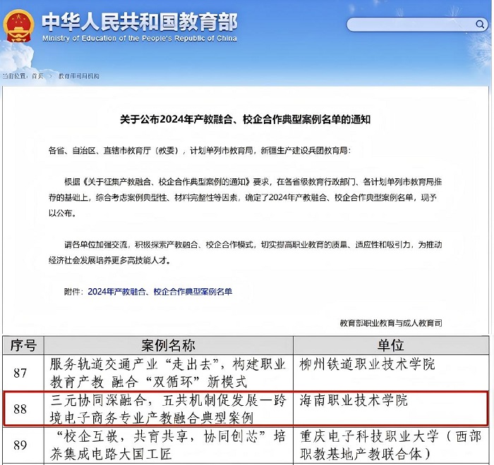 海職院跨境電子商務專業(yè)校企合作案例入選教育部2024年產(chǎn)教融合、校企合作典型案例