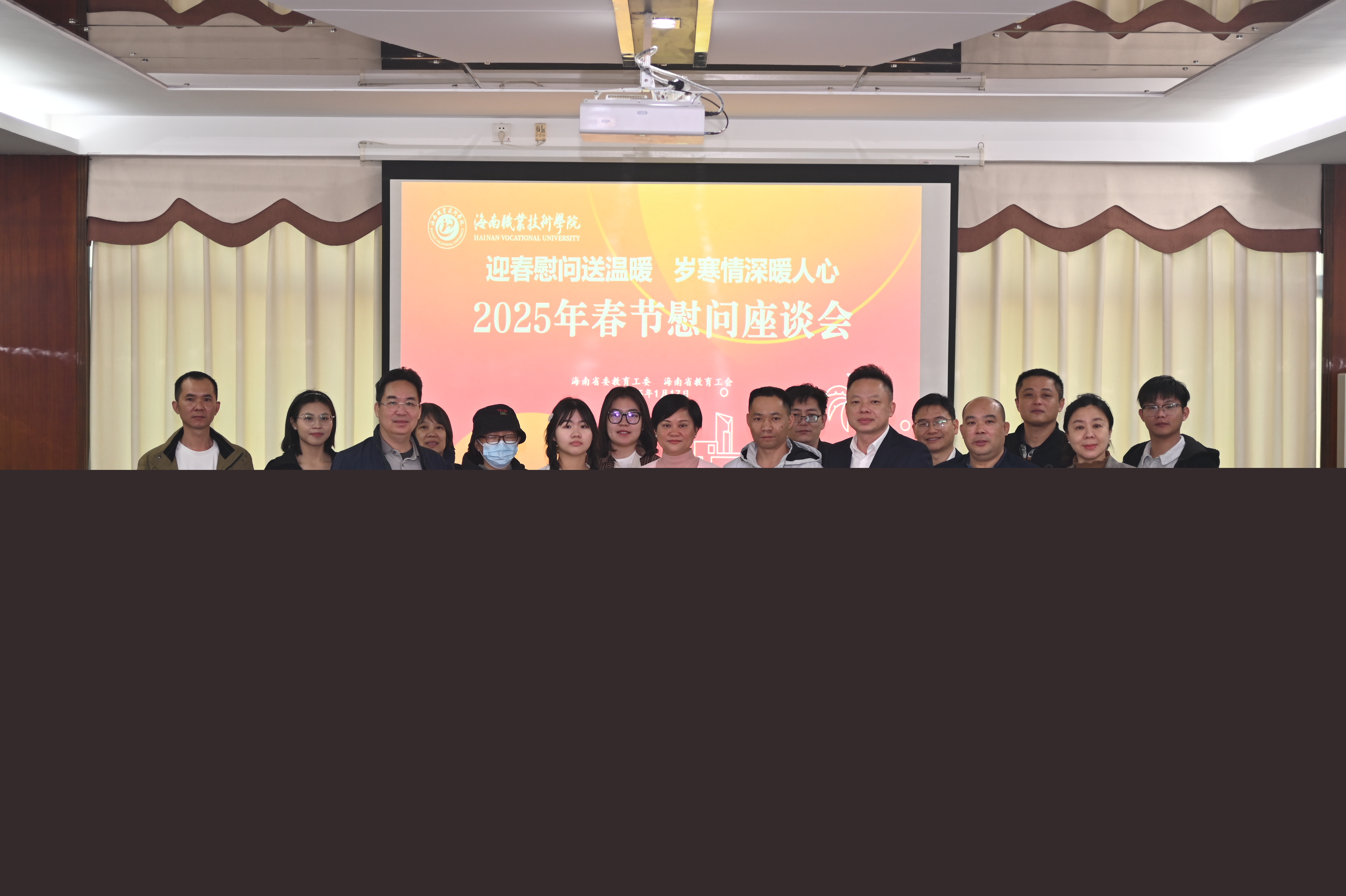會(huì)上,林洪冰代表省委教育工委、省教育工會(huì)為我校師生送上了新春祝福,強(qiáng)調(diào)了省委教育工委和省教育工會(huì)對(duì)教育系統(tǒng)老黨員、老干部和廣大教職員工的深切關(guān)懷,感謝他們?yōu)榻逃聵I(yè)做出的貢獻(xiàn),并對(duì)學(xué)校一年來(lái)取得的成績(jī)表示肯定。同時(shí)希望大家今后再接再厲助力學(xué)校新發(fā)展,共享機(jī)遇助力海南新發(fā)展。周炳才代表學(xué)校黨委、全體教職工對(duì)省委教育工委、省教育工會(huì)領(lǐng)導(dǎo)的關(guān)懷慰問(wèn)表示衷心感謝。新的一年,學(xué)校將一如既往推進(jìn)各項(xiàng)工作落實(shí)落地,推動(dòng)學(xué)校各項(xiàng)事業(yè)高質(zhì)量發(fā)展。
