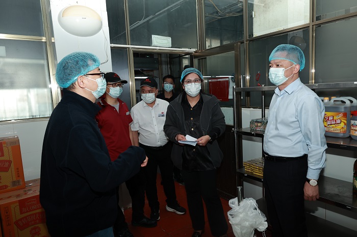 隨后,周炳才對校園重點區(qū)域進行了安全檢查。對學生宿舍的用電安全、消防設(shè)施、環(huán)境衛(wèi)生等設(shè)備設(shè)施的維護,對學生食堂后廚衛(wèi)生、餐具消毒及留樣制度進行重點檢查。周炳才強調(diào),要進一步加強宿舍安全管理,要高度重視食品衛(wèi)生安全工作,筑牢安全防線,守護師生健康。