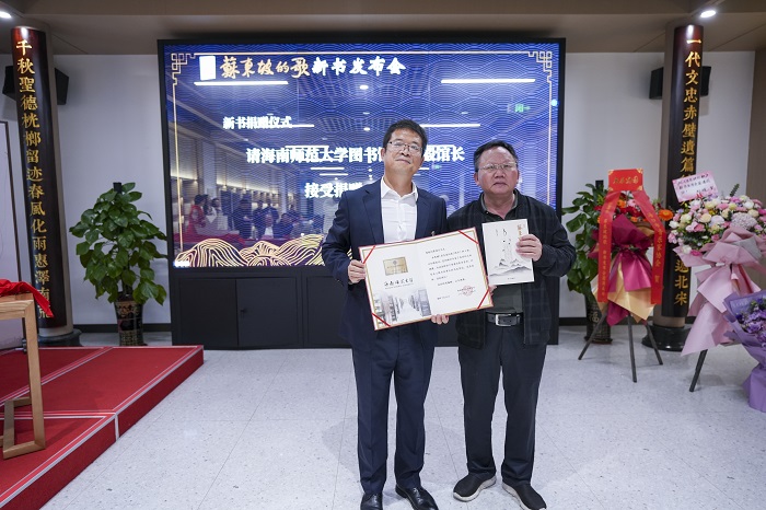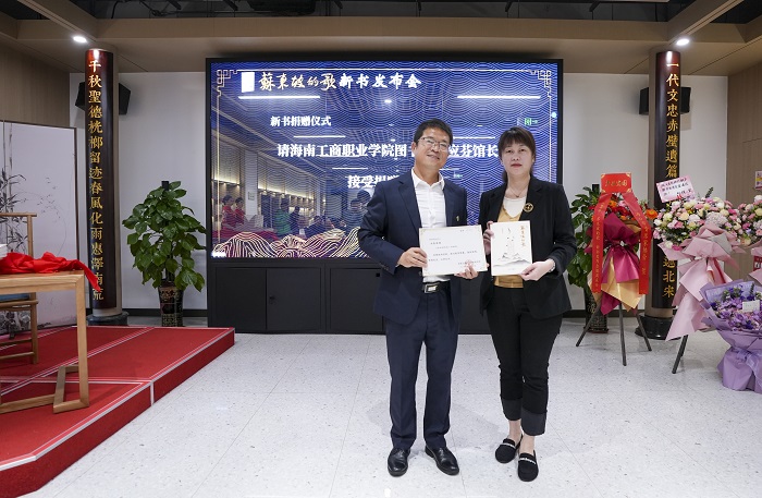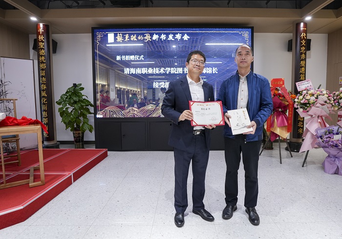 發(fā)布會(huì)上,蔡建東分別向海南師范大學(xué)、海南職業(yè)技術(shù)學(xué)院、海南工商職業(yè)學(xué)院等校圖書館和海南省圖書館、海口市圖書館捐贈(zèng)了新書。