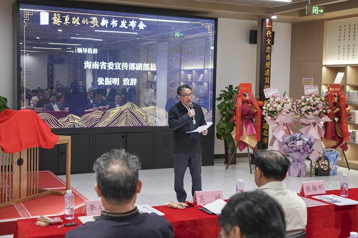 海南著名東坡文化研究學(xué)者、海南省蘇學(xué)研究會(huì)副會(huì)長(zhǎng)、海南大學(xué)教授海濱主持發(fā)布會(huì),對(duì)該書予以高度評(píng)價(jià)。他表示,蔡建東以音樂為舟,詩(shī)詞為帆,用音樂的語言續(xù)寫蘇東坡先生的傳奇,該書集結(jié)了東坡先生人生中多個(gè)重要時(shí)間節(jié)點(diǎn)的原創(chuàng)詩(shī)詞歌曲,通過雅俗共賞的方式講述東坡先生的故事,以音樂的藝術(shù)手段弘揚(yáng)東坡文化和精神,讓這份跨越千年的文化情懷,在現(xiàn)代社會(huì)中煥發(fā)光彩。