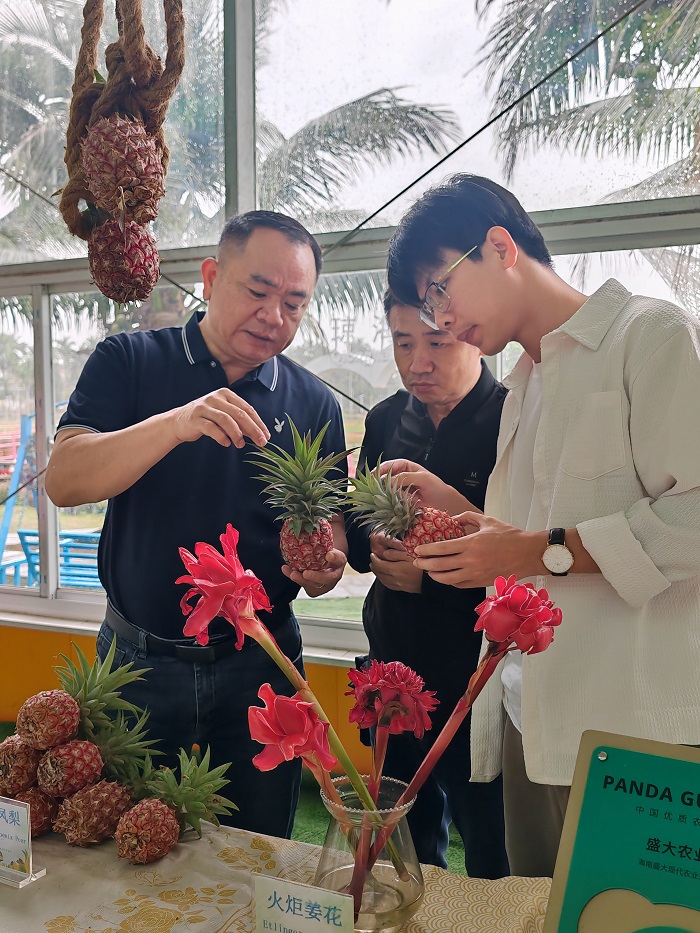 熱農(nóng)學(xué)院教師討論熱帶水果品類(熱農(nóng)學(xué)院供圖)