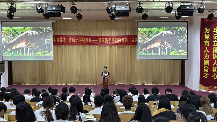海南康泰旅游股份有限公司人力資源總監(jiān)陳春暖、導(dǎo)管經(jīng)理劉玲等企業(yè)代表,海南職業(yè)技術(shù)學(xué)院黨委委員、校長助理沈振國,旅游學(xué)院院長顏燕以及旅游管理專業(yè)的全體師生參加活動。