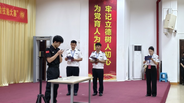 大賽以“崗課賽證強(qiáng)技能,校企合作育菁英”為主題,分為驗(yàn)證和人身檢查兩大環(huán)節(jié),全面考察選手的安檢知識(shí)、設(shè)備操作及突發(fā)事件應(yīng)對(duì)能力。比賽過(guò)程中,選手們快速識(shí)別證件與登機(jī)牌存在的錯(cuò)誤,熟練使用手持探測(cè)儀等設(shè)備,快速查驗(yàn)和識(shí)別危險(xiǎn)物品,展現(xiàn)了高超的專業(yè)素養(yǎng)。經(jīng)過(guò)激烈角逐,來(lái)自2023級(jí)安檢班的張秋雅、王淙正和曾婕妃三位同學(xué)憑借出色的表現(xiàn)分別奪得金、銀、銅獎(jiǎng)。