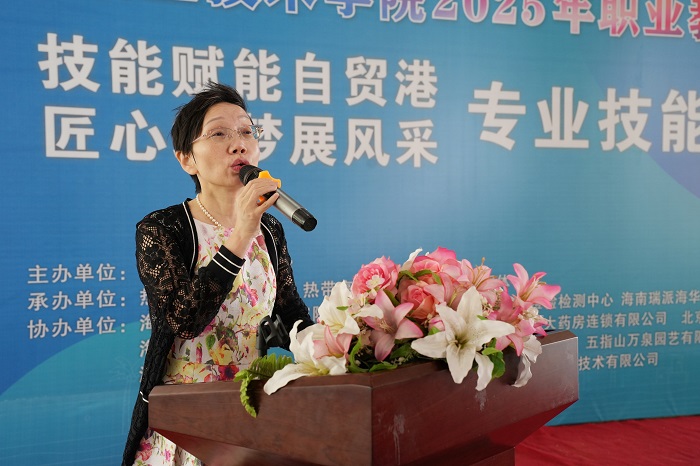 王云惠詳細(xì)介紹了職教周學(xué)院系列活動內(nèi)容,并對本次專業(yè)技能大賽的多個項(xiàng)目進(jìn)行了說明。她表示,本次大賽項(xiàng)目的開展,是學(xué)院落實(shí)職業(yè)教育方針、服務(wù)自貿(mào)港建設(shè)的重要舉措,希望全體參賽選手能在比賽中充分展現(xiàn)專業(yè)技能,賽出水平、賽出風(fēng)采。
