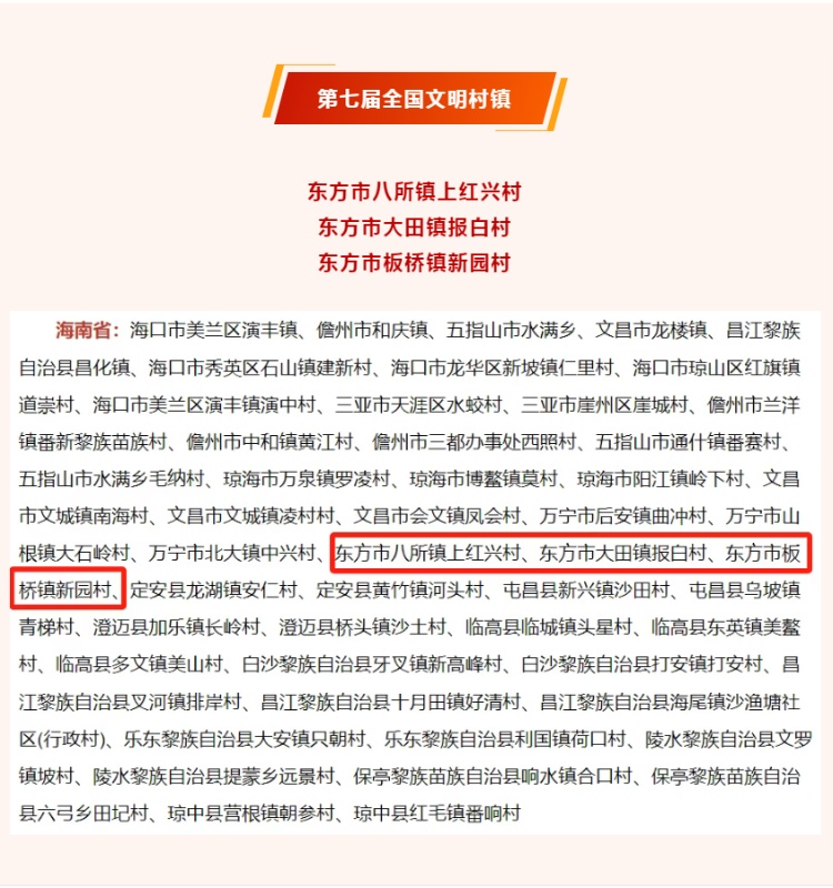 我校鄉(xiāng)村振興定點幫扶對象東方市板橋鎮(zhèn)新園村獲評第七屆全國文明村鎮(zhèn)