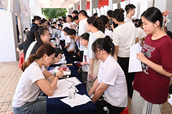 5月23日,由中共海南省委組織部、海南省人力資源和社會保障廳、海南省教育廳和海南職業(yè)技術(shù)學(xué)院聯(lián)合主辦的“海南學(xué)子·就在海南”留才行動——2025屆畢業(yè)生校園大型招聘會在學(xué)校第一教學(xué)一樓隆重舉行,本次招聘會吸引了114家優(yōu)質(zhì)企業(yè)到場參會,涵蓋智能制造、醫(yī)藥、信息技術(shù)、現(xiàn)代服務(wù)、教育培訓(xùn)等多個行業(yè)領(lǐng)域,提供就業(yè)崗位超過3500個。招聘會現(xiàn)場氣氛熱烈,學(xué)校4000余名學(xué)生積極參與用人單位面對面溝通,尋找心儀崗位。學(xué)生們現(xiàn)場共投遞簡歷2784份,與招聘單位初步達成就業(yè)意向的718人,當(dāng)場確定錄用132人。