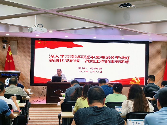 培訓(xùn)班專題教學(xué)第三講由學(xué)校黨委統(tǒng)戰(zhàn)部部長(zhǎng)符國(guó)繁主講。符國(guó)繁以《深入學(xué)習(xí)貫徹習(xí)近平總書記關(guān)于做好新時(shí)代黨的統(tǒng)一戰(zhàn)線工作的重要思想》為題,系統(tǒng)闡述統(tǒng)戰(zhàn)工作歷史,并結(jié)合學(xué)校工作實(shí)際講解新時(shí)代高校統(tǒng)戰(zhàn)工作的理論要點(diǎn)與實(shí)踐路徑。
