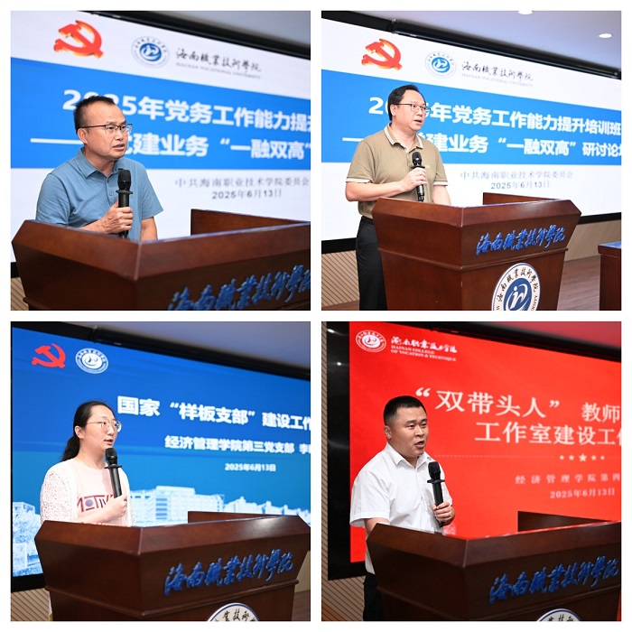 6月11—13日,為深入貫徹落實(shí)《中國(guó)共產(chǎn)黨普通高等學(xué)?;鶎咏M織工作條例》以及海南省委教育工委關(guān)于進(jìn)一步加強(qiáng)和規(guī)范黨的組織生活制度相關(guān)文件精神,推動(dòng)黨建與事業(yè)融合發(fā)展,我校黨委舉辦了黨務(wù)工作能力提升培訓(xùn)班。本次培訓(xùn)通過專題教學(xué)、現(xiàn)場(chǎng)研學(xué)、警示教育、業(yè)務(wù)研討等方式,系統(tǒng)提升黨務(wù)工作者政治素養(yǎng)與業(yè)務(wù)能力。學(xué)校黨政領(lǐng)導(dǎo)、中層干部、黨支部書記、民主黨派代表及留學(xué)歸國(guó)人員等百余人參加學(xué)習(xí)。