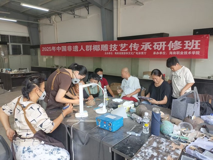 8月22日,2025年中國非遺人群椰雕技藝傳承研修班結業(yè)儀式在我校舉行。海南省旅游和文化廣電體育廳非物質文化遺產處一級主任科員王君、海南職業(yè)技術學院副校長李琳娜、海職院繼續(xù)教育學院常務副院長黃煒等出席結業(yè)儀式。