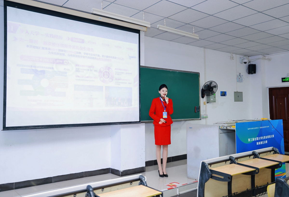 近日,第三屆全國大學(xué)生職業(yè)規(guī)劃大賽海南賽區(qū)決賽圓滿落幕。我校旅游學(xué)院空中乘務(wù)專業(yè)學(xué)子朱忠婧在本次大賽成長賽道中表現(xiàn)優(yōu)異,憑借清晰科學(xué)的職業(yè)規(guī)劃、扎實(shí)的專業(yè)素養(yǎng)與卓越的綜合表現(xiàn),榮獲金獎(jiǎng),充分展現(xiàn)了學(xué)院育人工作的顯著成效。