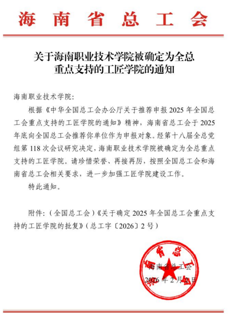 喜報(bào)!海職院被確定為全國(guó)總工會(huì)重點(diǎn)支持的工匠學(xué)院