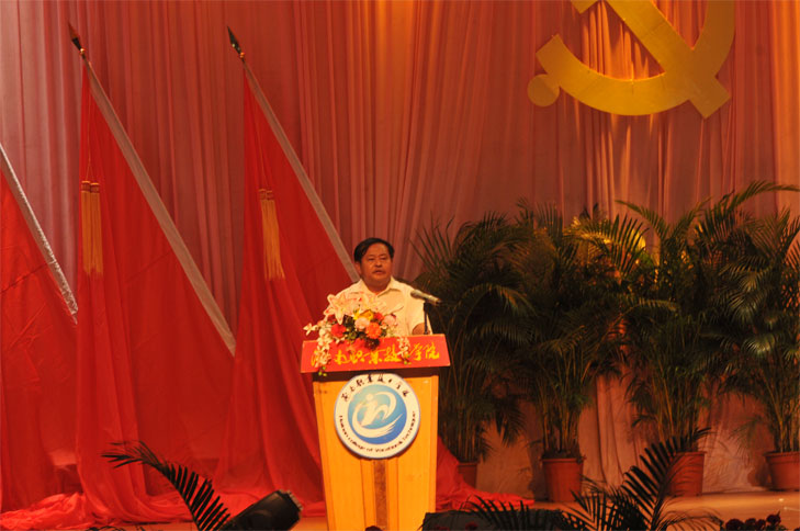 大會在莊嚴的國歌中拉開帷幕。學院黨委書記林虎在會上做了重要講話。林虎書記向全體黨員致以節(jié)日的問候,向即將加入中國共產(chǎn)黨的新黨員表示熱烈的祝賀。他肯定了在示范院校建設過程中各級黨組織發(fā)揮的領導核心作用以及廣大黨員起到的模范帶頭作用。為了加快我院示范院校建設,提升辦學水平,加快發(fā)展步伐,林虎書記向所有黨員提出了三個要求:一要以創(chuàng)先爭優(yōu)活動為契機,鞏固學習實踐科學發(fā)展觀成果;二要以創(chuàng)先爭優(yōu)活動為核心,加強黨的建設;三要以創(chuàng)先爭優(yōu)活動為動力,全面推進示范院校建設。